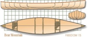 Like its sisterships, the Freedom 15 features an asymmetrical hull with a fine bow and slightly fuller stern. The mid section has mild tumblehome for comfortable solo paddling and good structural rigidity. A small canoe has an easier time turning corners and needs some design features to aid with straight-line tracking. To this end, the Freedom 15 has less rocker and deeper aft sections for effortless steering. The 35" beam gives it a stability factor of 104 which means it will give confidence to those on board, and yet be a pleasure to paddle. We see it on lakes, rivers, and portages being used for camping, day trips, fishing and just playing around.