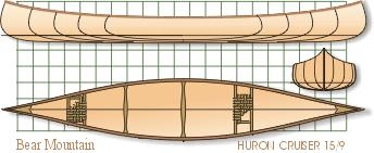 The lines for this canoe were taken from an original 'Huron' built in cedar/canvas by the Peterborough Canoe Company. It was a second grade model in a series of Cruiser canoes that measured from 16'x33" to 18'x37". "They have good carrying capacity while retaining a light draft, and are an easy paddling craft that can be handled well in rough or swift waters. The gunwale line is straighter in these models and is lowered at bow and stem, thus offering less wind resistance." The rounded bottom shape may reduce carrying capacity but the paddler may expect a quick and responsive craft." ...from the 1929 Peterborough Canoe Co. catalogue.