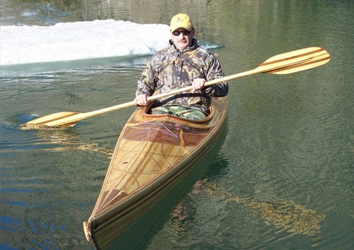 Developed in response to requests from heavier and wider paddlers who also wanted a shorter boat, this stable load carrier is excellent for the novice kayaker. It will inspire confidence and lead to a continuing enjoyment of the sport. Like the 14 footer, the rocker has been reduced aft to aid in tracking ability. The beam is ample at 25.4" and the cockpit has been widened to match. The hull is a very shallow vee, the flattest of the hulls shown here to permit the width for stability and yet maintain a moderate displacement. A maximum beam of 25.4" compared with the 17 footer at 23.5" is more stable and has good load capacity. Average load is 260 lbs. but it can handle up to 340 lbs. without a problem.