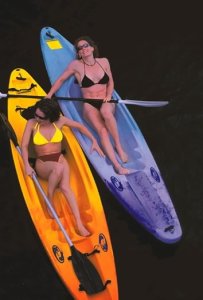 Swell Plus Sit-on-top simplicity for maximum fun. Attention to detail, makes the Swell one of the most desirable kayaks to own. The unique hull design results in a kayak that is super stable, hard-tracking, and well suited for surfing. Incorporated into the deck is a seat so supportive and comfortable you'll choose the Swell over any beach chair. Youngsters and “alleged” grown-ups will have an absolute blast with a Swell sit-on-top kayak. If diving is your sport of choice, you'll never surface-swim again. Diving is facilitated by tank wells fore and aft and the porthole storage found on the Swell Plus. Outfitting includes scupper holes plugs for dry paddling. Molded in grab-holds mean, unlike other sit-on-tops, the Swell can be easily carried by one person.