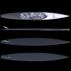 Adding to the great design, King’s race boards are constructed using our exclusive carbon fiber vacuum bagging techniques. Vacuum bagging is a technique employed to create mechanical pressure on a laminate during its cure cycle. Pressurizing a composite lamination serves several functions. First, it removes trapped air between layers. Second, vacuum bagging compacts the fiber layers for efficient force transmission among fiber bundles and prevents shifting of fiber orientation during cure. Third, it reduces humidity. Finally, and most important, the vacuum bagging technique optimizes the fiber-to-resin ratio in the composite part. These advantages have for years enabled aerospace and racing industries to maximize the physical properties of advanced composite materials such as Graphite (carbon fiber,) aramid, and epoxy.