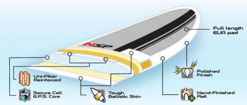 NSP E2 Epoxy is the original NSP construction. In 2001 NSP was released with E2 and quickly become one the largest surf and Stand Up Paddle board brands in the world.
