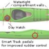 The Crunch is fully equipped with day hatch as well as bow and aft compartments. The recessed deck fittings accommodate a very clean deck rigging system with full perimeter deck lines and ergonomically designed carrying handles. It is available with the excellent retractable Navigator rudder from KajakSport and Smart Track rudder control system that allows for comfortable support, as well as strong steering efficiency.