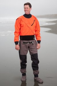 Hydrus 3L waterproof, breathable fabric. Self draining punch-through neck & wrist neoprene over-cuffs. Self draining, zippered chest pocket with key lanyard. Competition cut underarm, latex neck and wrist gaskets. Watersports entry and relief zippers. Adjustable bungee drawcord at waist. Self-draining seat and knee patches. Dual-adjustable overskirt incorporates “hook & loop” compatible neoprene. “Hook & loop” adjustable neoprene over-cuffs at ankle. Integrated Hydrus™ socks; factory sealed seams