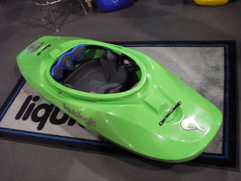 Liquid Logic Ronin - Liquid Logic brings some length and pop to their aerial line. The planing foot has been extended bow and aft to give more surface area for even bigger bounce and the decks have been sharpened up a bit edgewise as well. Width adjustments have been made for faster edge-to-edge transfer. Also, 5 boats were stolen from the outdoor demo here in Salt Lake City, so if your local kayak thief tries to sell you some suspicious looking Ronins, savagely beat the number for the police non-emergency into your cell phone and report them. Thank you.