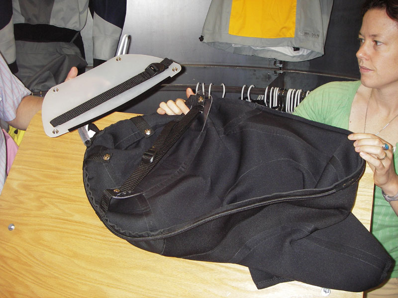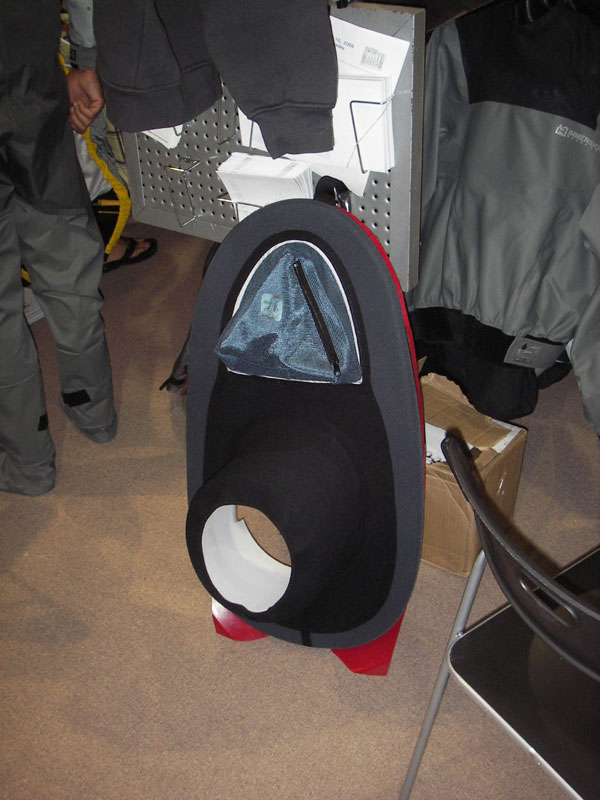 Immersion Research - Well, you start talking to Kara Weld and where does the time go? Who knows. They're just great folks over at Immersion Research and judging by all the photos I took, I guess time got away from me. The big item is that they finally have a dry suit now which looks great as always. The more fashionable items made it into the article - Burmuda shorts, pink hot pants (James Brown would be proud) and a new backband. Also, they have a spray skirt coming out that has an anti-implosion bar / Over-thruster component in the front. Groovy.