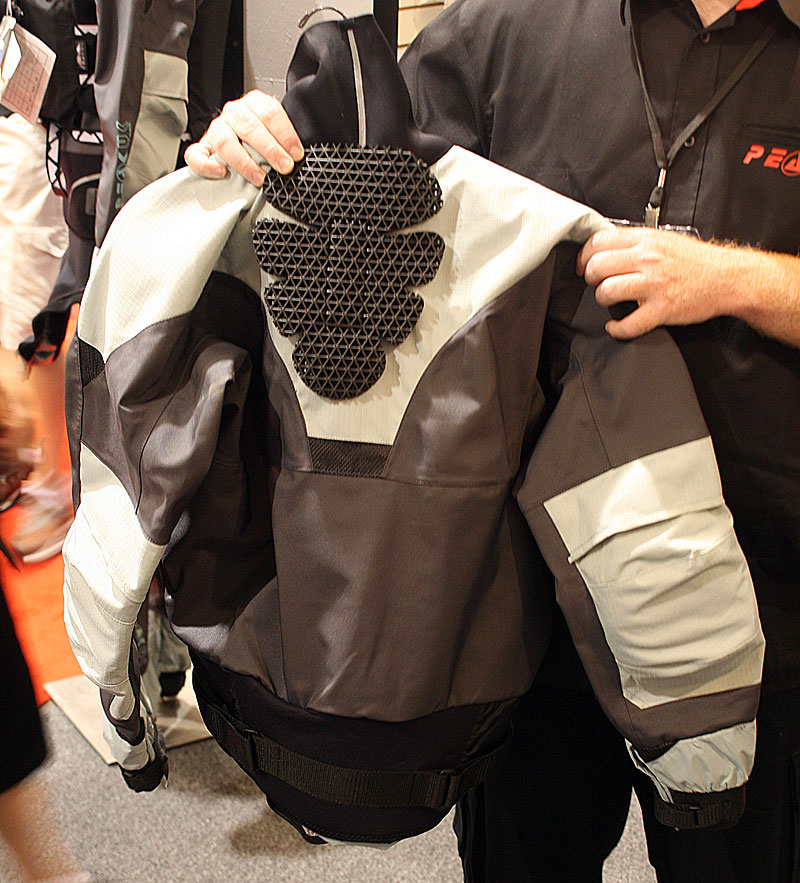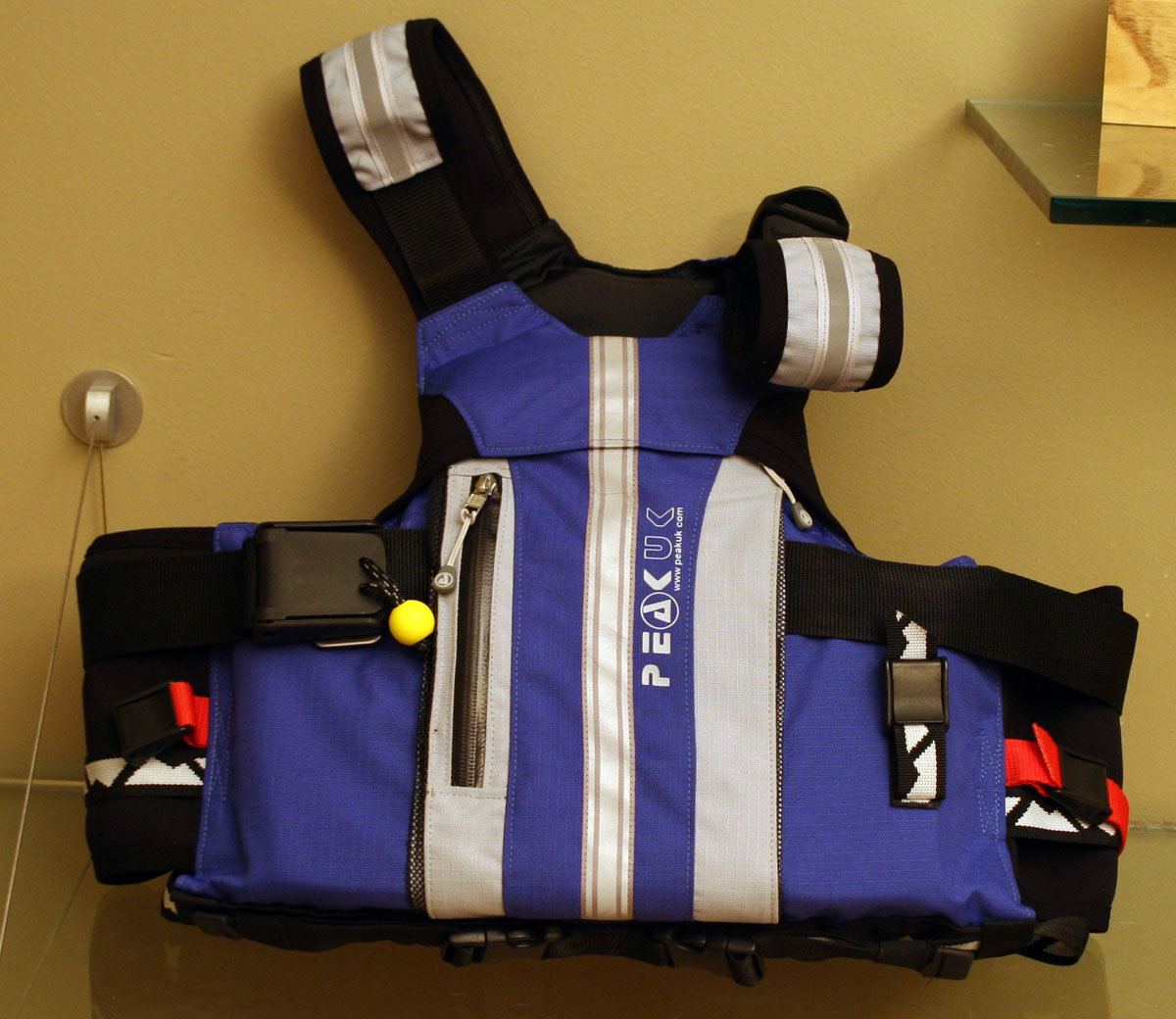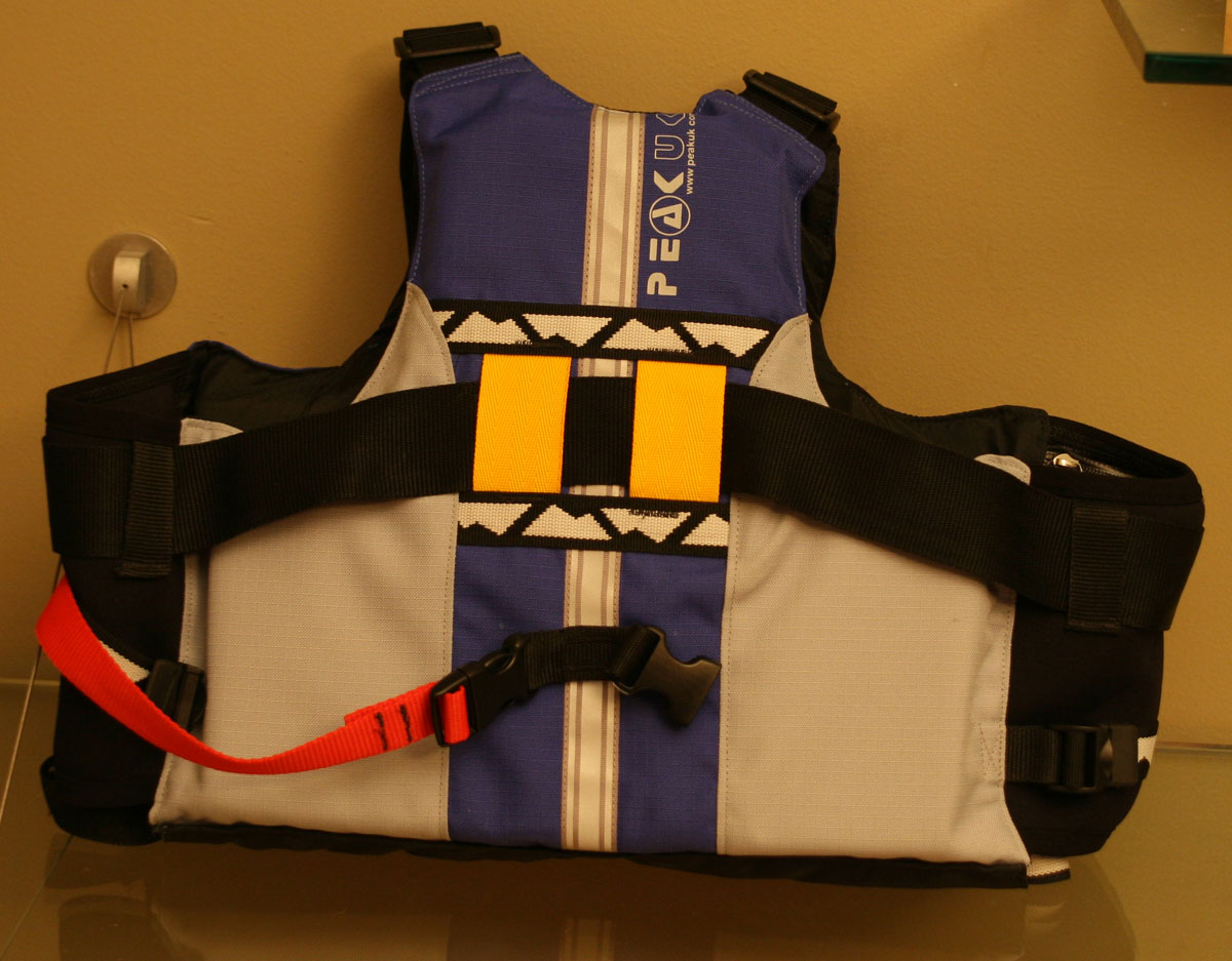Peak has a new drytop this year with integrated armor padding. Impact rated to over 55 MPH, these flexible foam pads fit into pockets sewn into the top, but are shown outside here for illustration purposes. Also, a new rescue vest has been added to the lineup