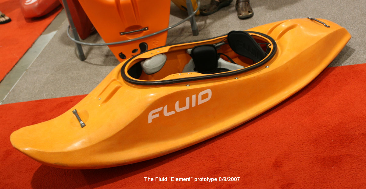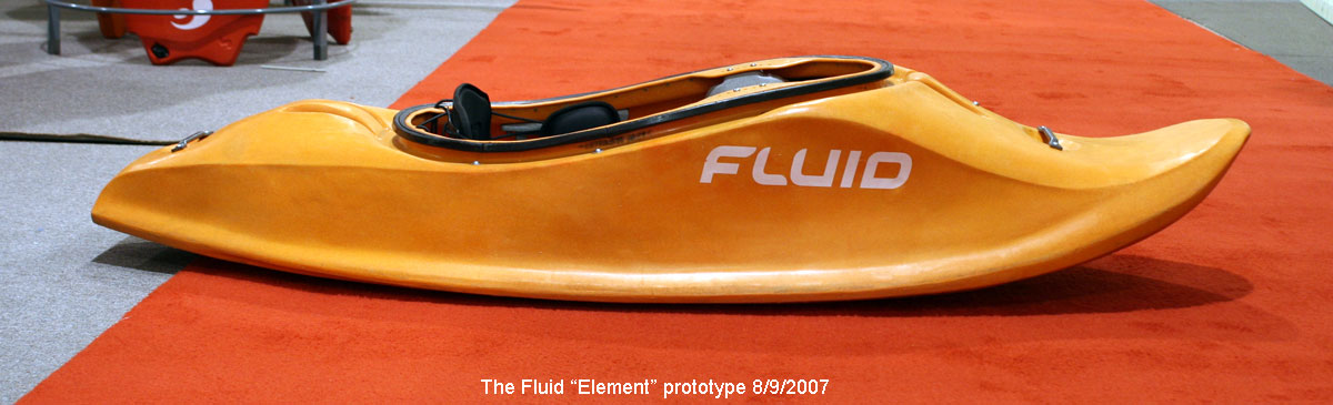 ELEMENT . Fluid's dedicated surfing kayak is taking on some interesting lines. Concave sidewalls, a clean release point at the stern and a low stern rocker profile promise a lot of speed on the wave comparable to the Drago Rossi Squashtail or the Necky Vibe. Should be interesting to see what Fluid's interpretation of the “river surfer†will offer.