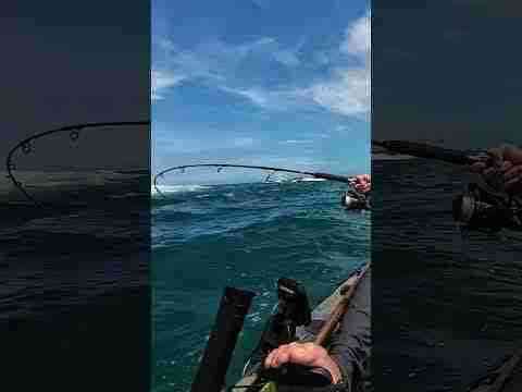 Kayak Fisherman Pulled Into Rocks by HUGE Fish Offshore! | #shorts